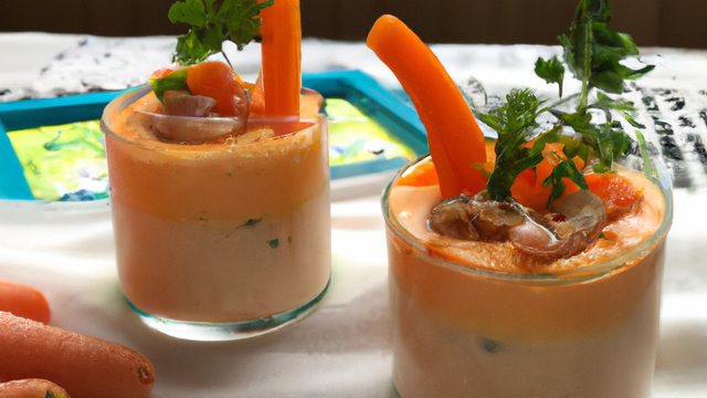 émulsion de lait parfumé aux crevettes sur purée de carottes aromatisée au cumin.