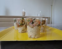 Une verrine fraîche idéale pour l'apéritif. Peut ce décliner avec du surimi ou autre poisson.