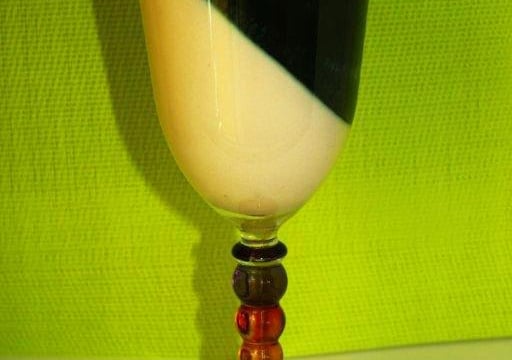 Chauffer la càs de crème au micro-ondes et y faire fondre la gélatine avant de l'incorporer au 1 er appareil. Remplir les verrines au tiers en les penchant et en laissant les verres semi-couchés dans une boîte à œufs. Faire prendre au moins 2 heures au réfrigérateur.