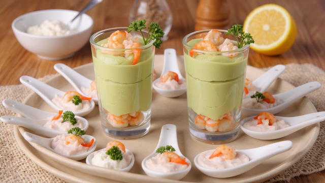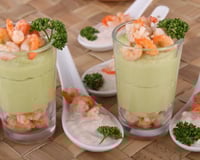 Cette entrée délaisse la mayonnaise pour une crème à base de ricotta et d'avocat, ce qui rend l'ensemble beaucoup plus léger. Le citron vient relever le mélange pour apporter de la fraîcheur et éviter que l'avocat ne soit trop lourd. En alternant simplement les crevettes entières et la mousse, on obtient une verrine équilibrée où l'on apprécie la texture ferme des crustacés. C’est une recette rapide qui permet de commencer un repas sur une note fraîche et colorée !