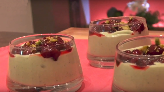 De jolies et délicieuses verrines aux griottes avec une pointe de pistaches pour encore plus de gourmandises. Une recette signée Mercotte, 100% facile à réaliser et très bonne.