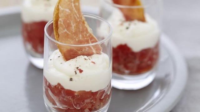 Une délicieuse verrine aux tomates et fromage frais, pour une entrée légère et gourmande.