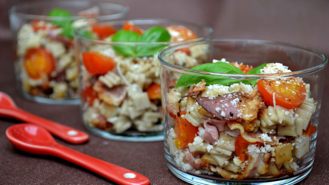 Une délicieuse salade de crozets servie en verrine pour l'apéro :-)
