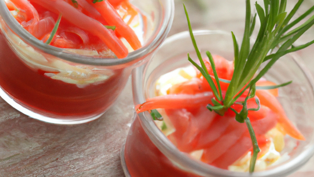 Dressez les verrines en intercalant les filets de rougets avec la salade assaisonnée et une couche de tapenade.