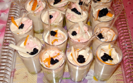 Mettre une cuillère à café de tarama (facultatif) pour la déco, sur la verrine.