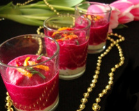 Couper les betteraves en petits cubes, presser les clémentines, ajouter leur jus aux betteraves, mettre 2 c à s de crème fraîche, passer le tout au mixeur.