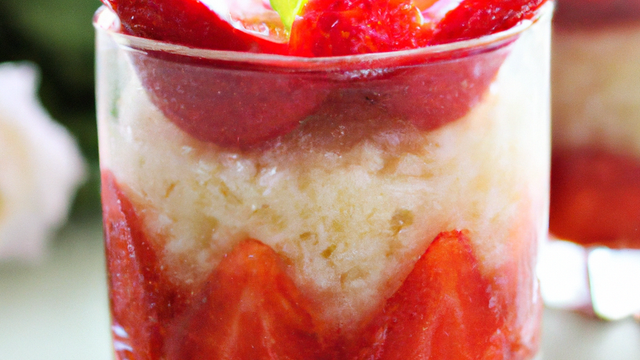 Répartir la moitié du riz dans 4 verrines, couvrir avec la moitié des fraises.