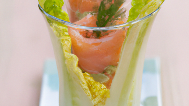 Montez les verrines en alternant la crème et le mélange de légumes et saumon.