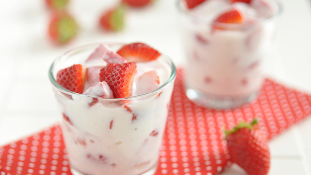 Un dessert aux fraises dans des verres de table