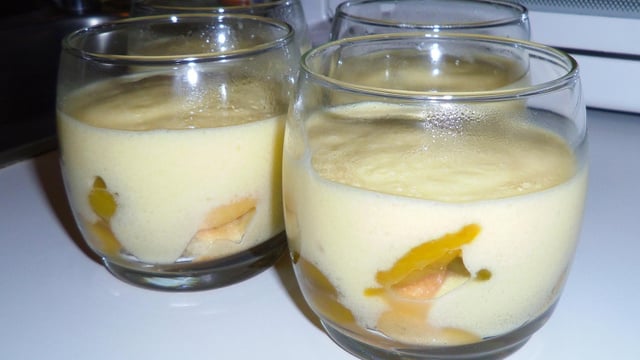 Hier, début d'après midi: J'apprends être invitée le soir même pour un bon hachis parmentier maison. Les copains, c'est moi qui ramène le dessert! Une seule condition: je ne veux pas aller en courses, pas assez de courage pour ça. Je fais donc le tour des placards pour voir ce que je peux préparer avec ce que j'ai sous la main ... Des boudoirs, des fruits en bocaux, des oeufs. C'est bon, j'ai trouvé. Seul bémol: Je voulais préparer mon dessert avec des abricots mais je n'ai jamais réussi à ouvrir le bocal. Tant mieux, car c'était délicieux avec des mirabelles !