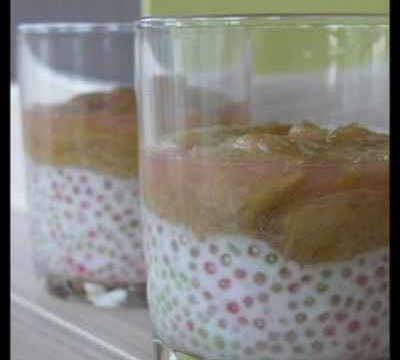 3/ Dresser les verrines (couche de tapioca puis rhubarbe) et laisser refroidir à température ambiante puis placer au frais.