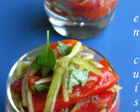 - 3Ajouter au mélange poivron-concombre, huile d'olive, vinaigre balsamique, basilic, herbes de Provence, ail ou échalote.Remplir les verrines.Mettre au frais avant de déguster un jour de grosse chaleur !