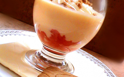 A l'aide d'une poche à douille, déposer un dôme de chantilly sur la crème au pamplemousse, et décorer de la chapelure de spéculoos.