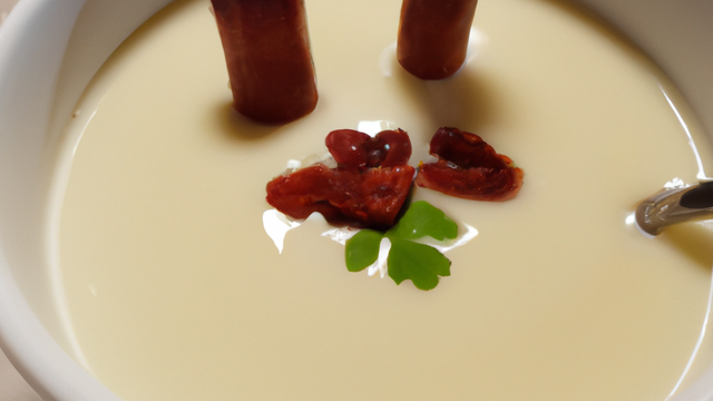 - Servir froid ou chaud selon la saison et ajouter des copeaux de chorrizo et des plûches de cerfeuil pour décorer.