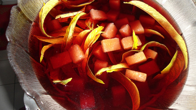 Rajoutez le vin rouge, couvrez d'un linge et laissez macérer 48 heures.