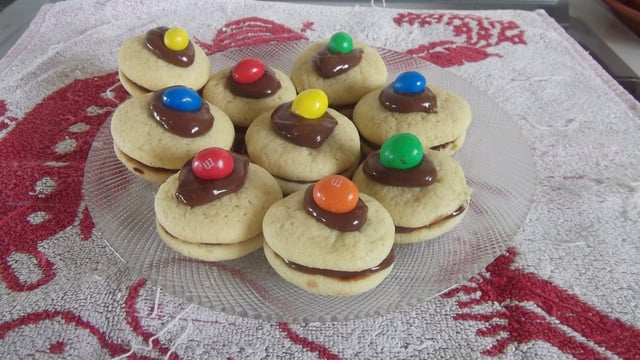 Dans un saladier, fouetter longuement le beurre et le sucre à l'aide un batteur (le mélange va fortement blanchir). Ajouter l'oeuf et fouetter à nouveau. Incorporer la farine et le mélange levure-bicarbonate. Dresser à l'aide d'une poche à douille (1cm idéalement ou à la petite cuillère) les biscuits sur une plaque recouverte d'un papier sulfurisé, veiller à bien les espacer. Enfourner pour 12min. Laisser les refroidir et les assortir par paire de même taille. - 2