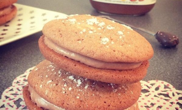 Garniture : Dans un saladier, battre le beurre avec le sucre glace et ajouter le Nutella. Mettre cette ganache dans une poche à douille et garnir les gâteaux refroidis.