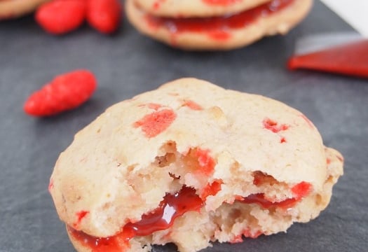 J'avais envie de changer du classique whoopies chocolat ou vanille et j'ai fait une petite improvisation avec des pommes et des pralines roses. Cela donne de vrais whooppies de filles, pas trop sucrés et originaux !!