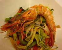 - 6Servir dans de petits bols et poser les gambas dessus...