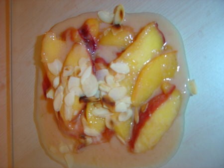 puis ajoutez les pêches et faites les cuire 3 mins environ