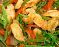 Faire chauffer quelques instants l'huile dans le wok puis incorporer les filets de poulets préalablement coupés en petits dés.