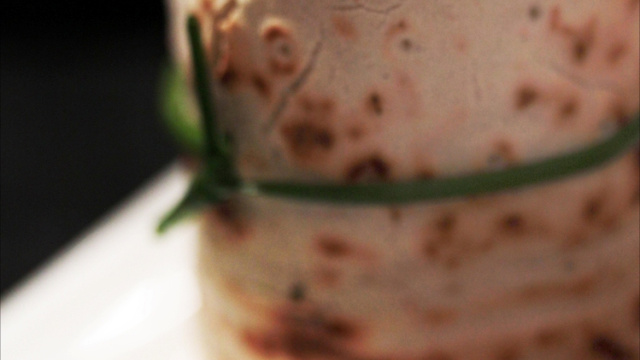 A la sortie du four, les mettre debout, les lier avec un brin de ciboulette et couper la ficelle. Servir aussitôt.