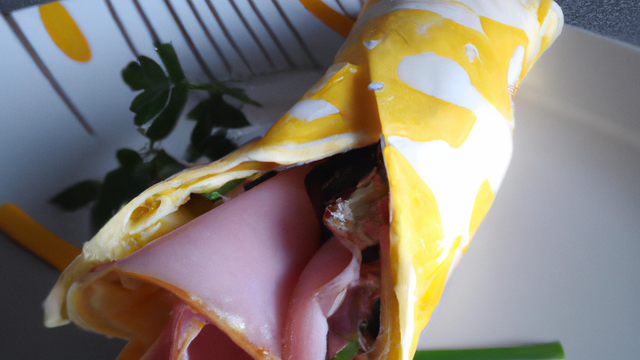 Battre les œufs avec toutes les épices. Faire chauffer un peu de beurre dans une poêle et verser le mélange d'oeufs. Cuire quelques minutes recto verso (comme une crêpe) puis disposer dessus les tranches de jambon et rouler.