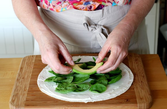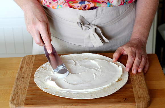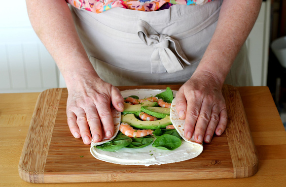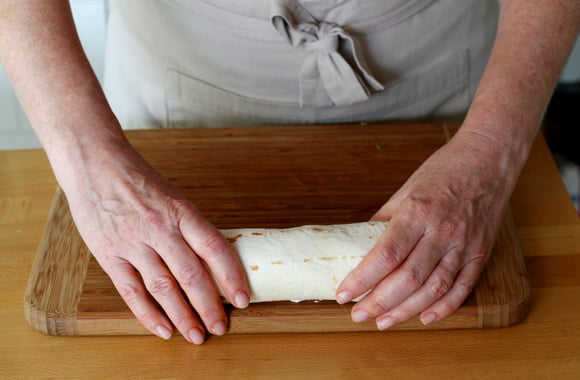 10Roulez jusqu'au bout et réservez dans du film étirable au frais jusqu'au moment de servir. Faites de même avec les 5 autres tortillas.