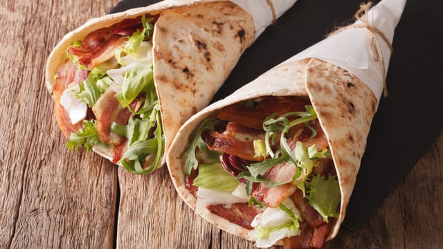 Dans une autre poêle, réchauffer les wraps recto-verso quelques secondes.
