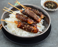 Voici une petite recette pleine d'exotisme que l'on retrouve assez souvent dans les restaurants asiatiques : les petites brochettes viande et fromage accompagnées d'une sauce maison, onctueuse, délicieuse ! Miam miam !