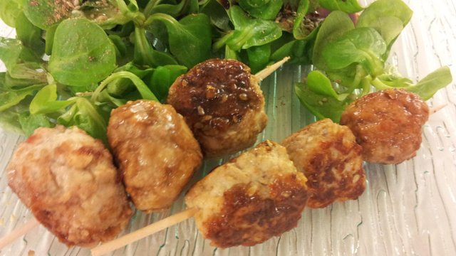 Pour terminer, une fois les boulettes cuites et bien colorées versez la marinade sur les boulettes et retournez les régulièrement. Dès que la sauce commence à caraméliser sur les boulettes, il est temps de passer à table !