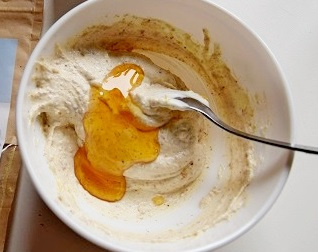 1Dans un bol, mélanger le yaourt avec la linette et l'amlou. Ajouter le miel et mélanger.