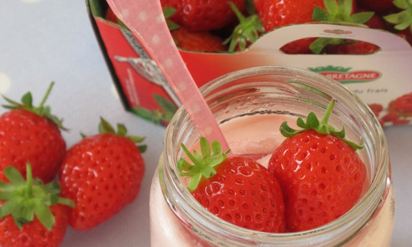 Au moment de servir, rajouter quelques fraises sur les yaourts.