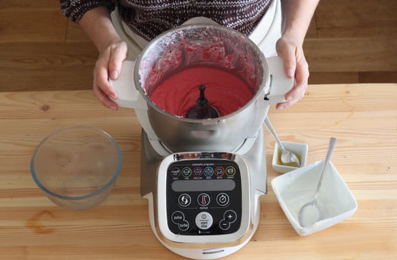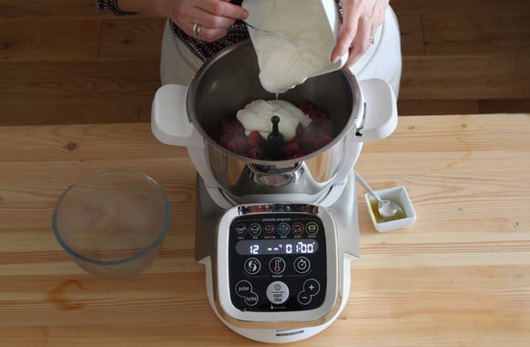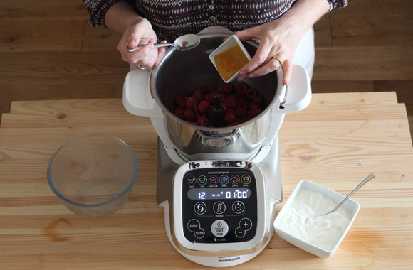 1Dans le bol muni du couteau Pétrisseur, versez les framboises surgelées.