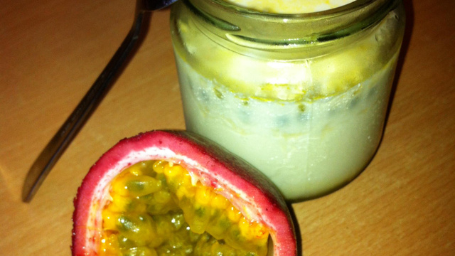 Vous pouvez déposer du fruit de la passion au moment de la dégustation sur votre yaourt.