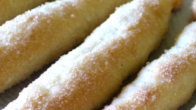 Sur le plan de travail prendre des petites boules de la taille d'une cuillère à café de pâte. Les rouler et les étendre sur un boudin de 15cm avec les bouts plus fins que le centre. Rouler la zézette dans la cassonade et déposer sur le papier cuisson.